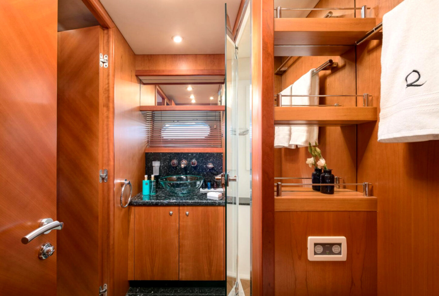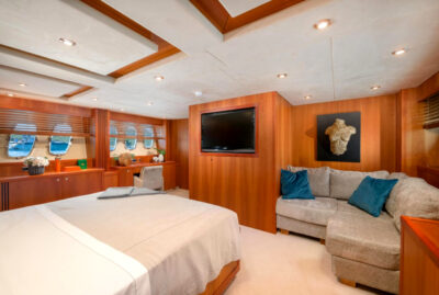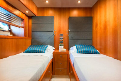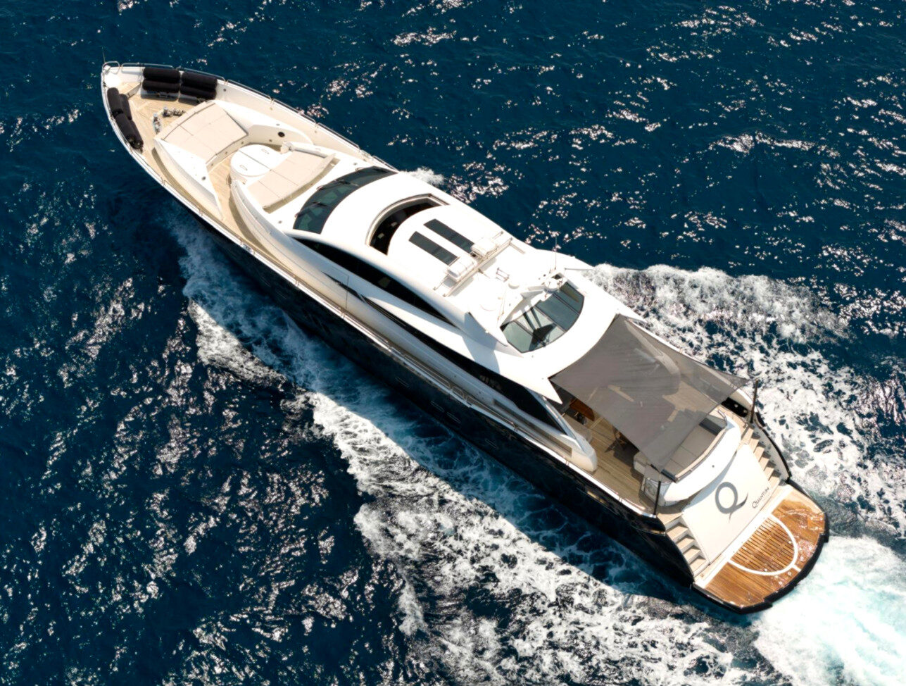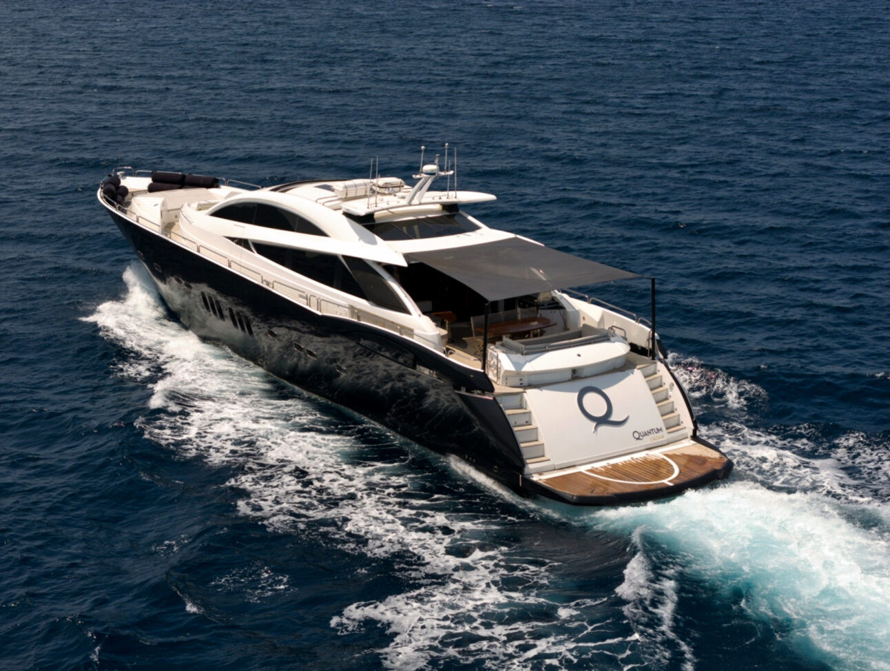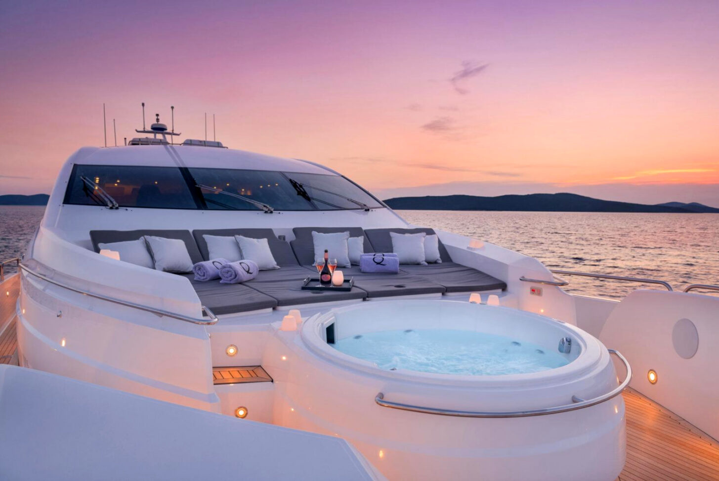 - Nadstandardní výbava: vířivka, venkovní bar, prostorný flybridge a moderní AV systémy