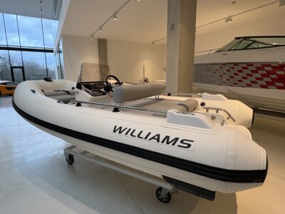 Williams Sportjet 400 je poháněn motorem BRP Rotax 4-TEC 1503 o výkonu 110 kW a dosahuje rychlosti přes 71 km/h (44 mil/h). Nabízí tak úžasný výkon a špičkovou jízdu. Tento model je ideální pro vodní lyžování, wakeboarding a jiné vodní sporty. Zároveň je perfektním řešením pro majitele jachet, kteří hledají nový člun.