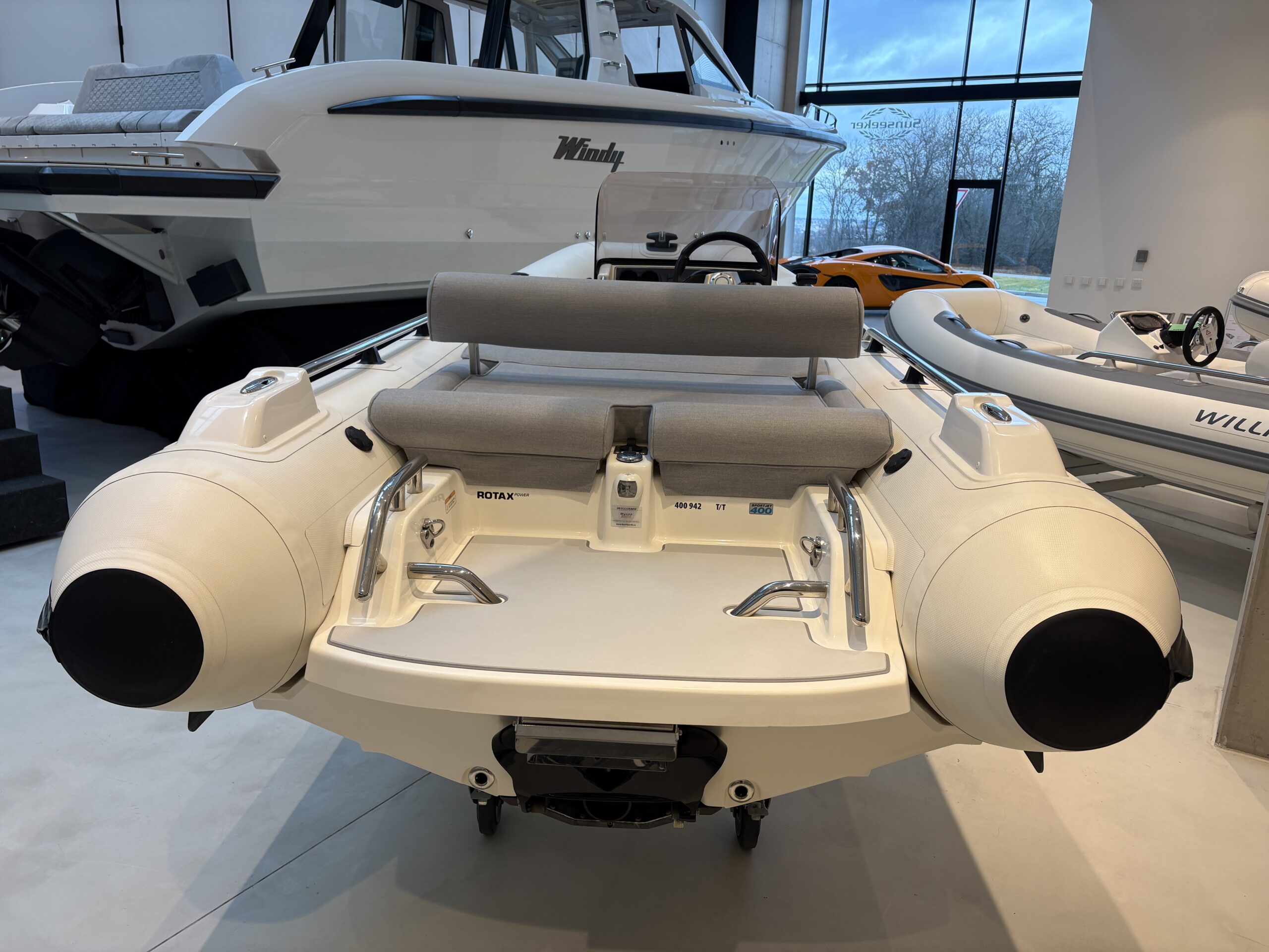 Sportjet 400 poskytuje snadné nastupování, schovaný koupací žebřík a proudový pohon, který je bezpečně schovaný v trupu člunu. Nabízí tak dokonalou stabilitu a pohodlí, které může nabídnout jen RIB.